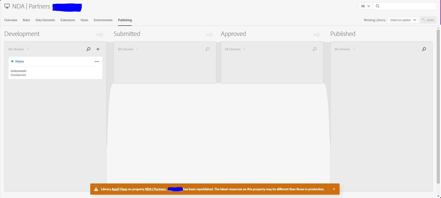 The republished library AppD belongs to different property but I can able to see the republished notification in above property where AppD Fixes library not exist at all.