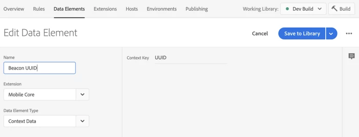Data elements in Adobe Experience Platform Launch act as aliases, making it easier to access data flowing through your mobile SDK implementation from both Adobe solutions and third-party extensions. Using data elements, customers can easily reference or use data as a workflow trigger, or condition. Data elements also make it easy to include mobile data such as context data, IDs, or anything else in post-backs to external endpoints (Figure 4).