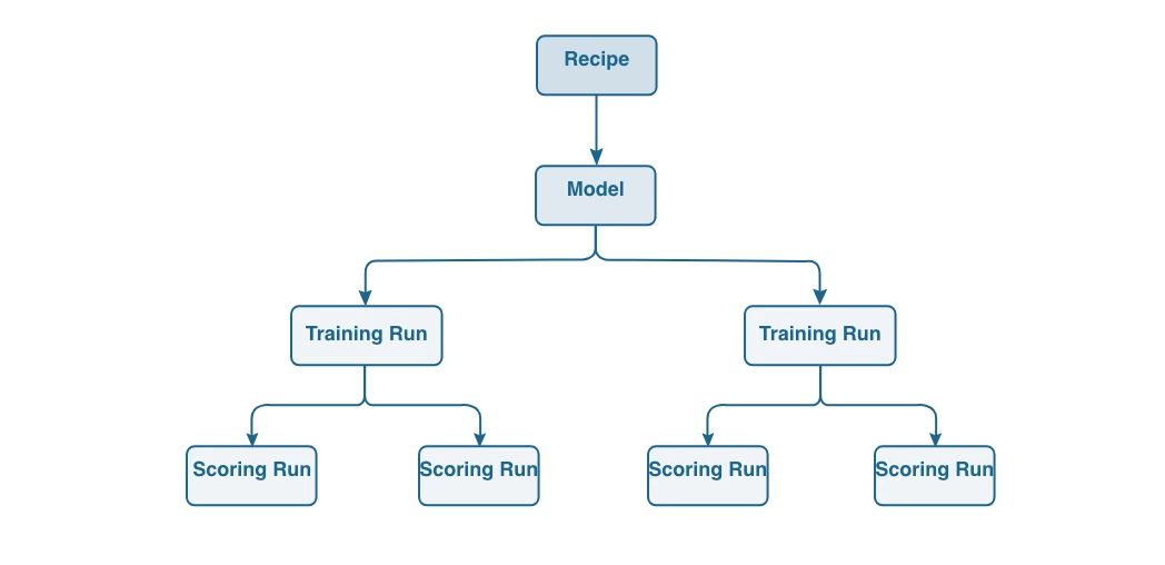 - Model: An instance of a recipe that is trained using historical data and configurations.
