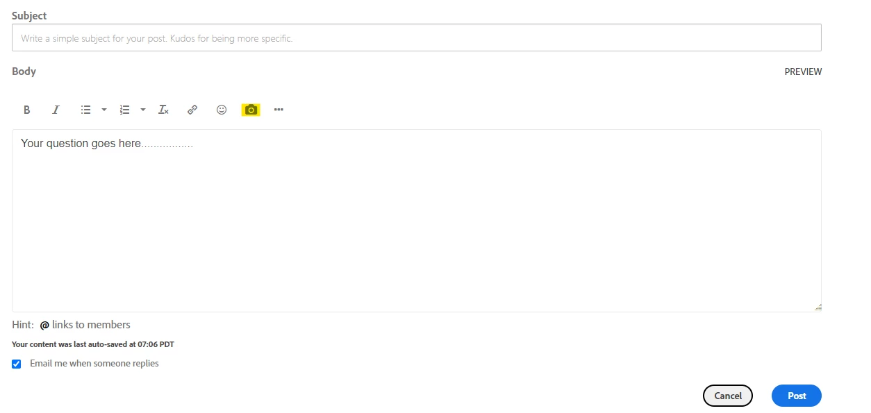 How to upload image while posting question/reply ? 2 ways..