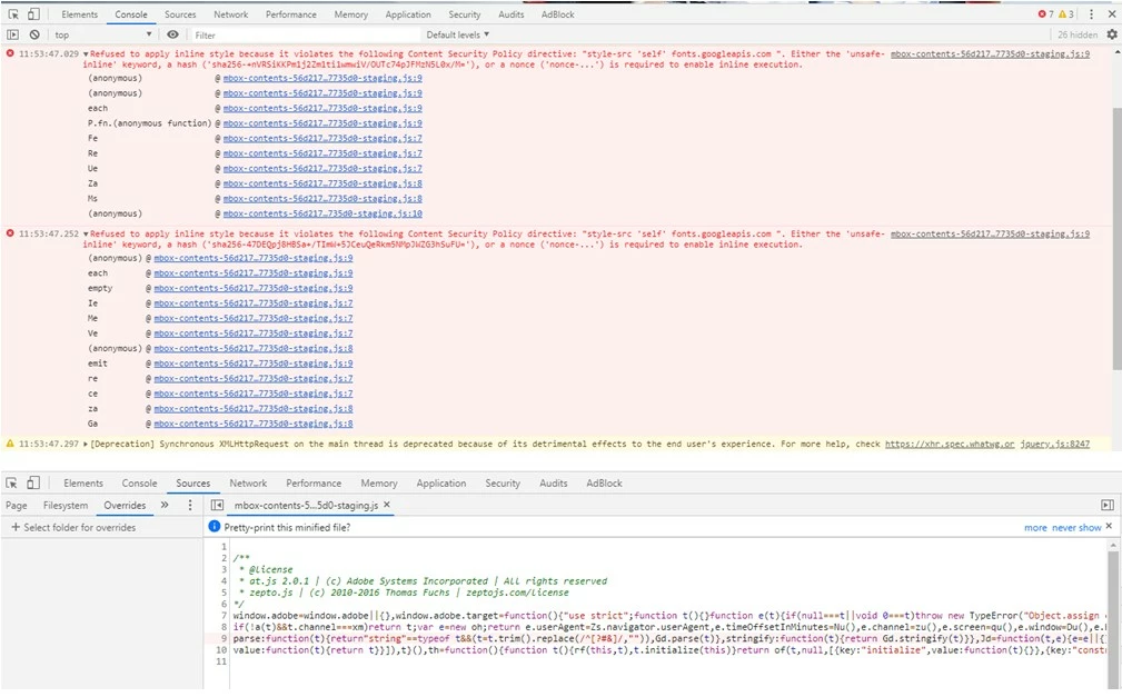 Adobe DTM Content Security Policy Block