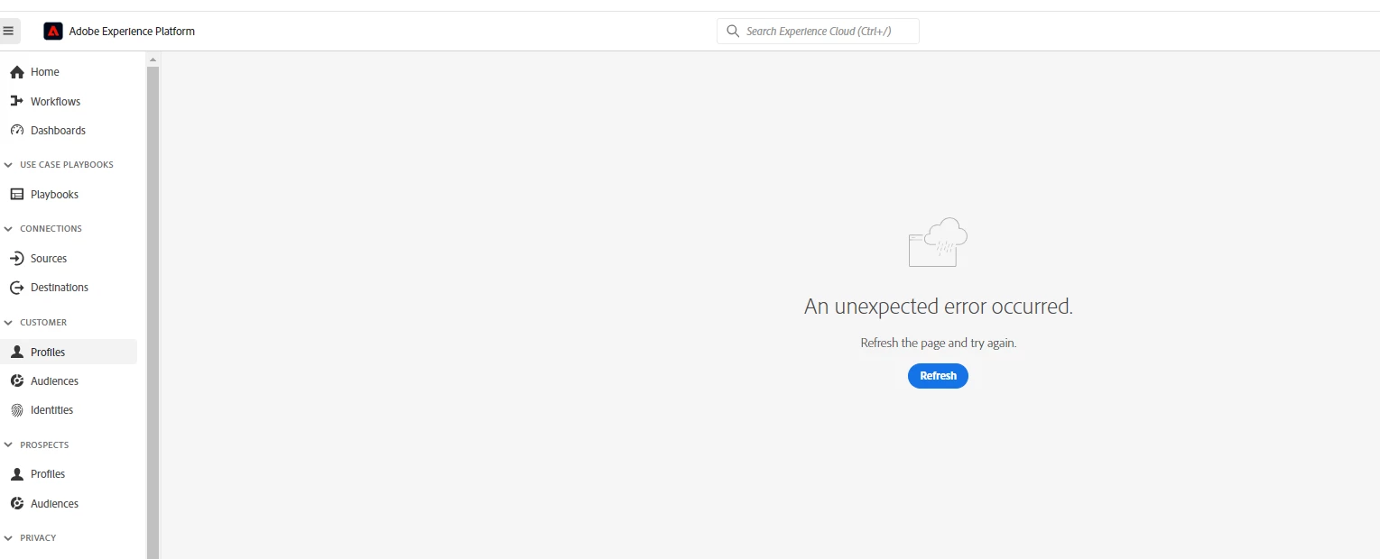 Adobe Experience platform Customer Profile Identity Namespace Error