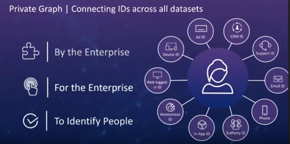 Private graph helps Adobe customers connect their online and offline data and provides identity resolution capabilities for use with various components and services on the Adobe Experience Platform.