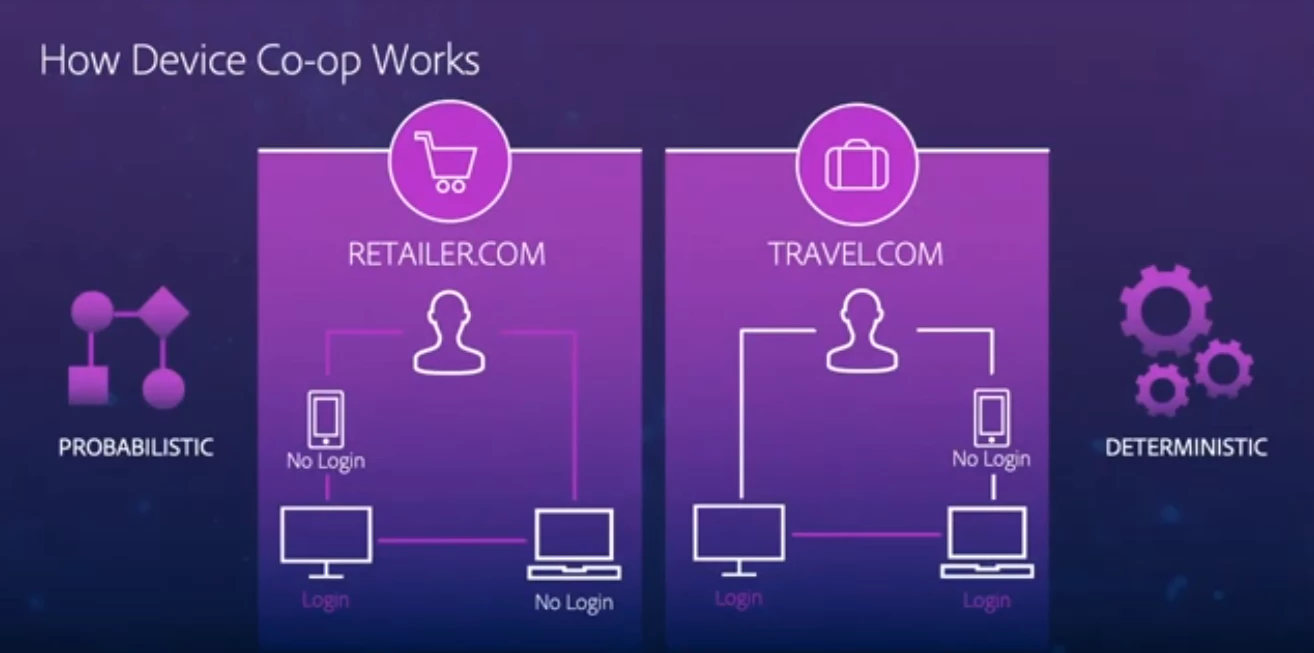 Currently, Adobe's Co-op Graph is comprised of 76% determinant links and 24% probabilistic links, which provides Adobe Experience Platform customers the rich and reliable identity graphs they need to market to people instead of devices.