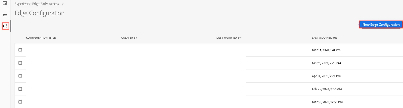 In order to do that, all clients will need to log in to the Adobe Experience Platform Launch UI to enable all Adobe SaaS solutions. They do this by creating a new Edge Configuration by clicking on the third tab located in the left nav. This basically creates a new Config ID that will be used to send data to Experience Edge.