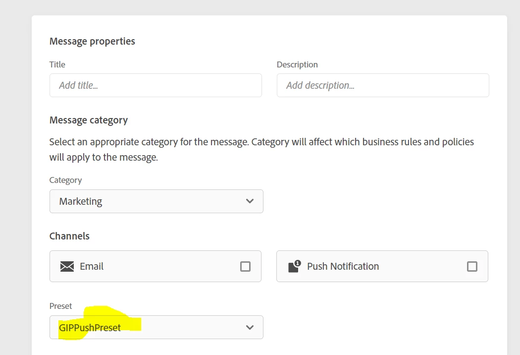 In adobe journey optimizer the sms option is missing while creating message attaching the screenshots