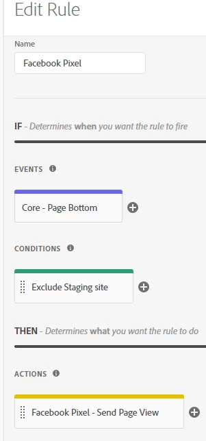We migrated our Facebook pixel from GTM to Adobe Launch. We created a rule using the Facebook extension action type "send page view" (screen grab below)