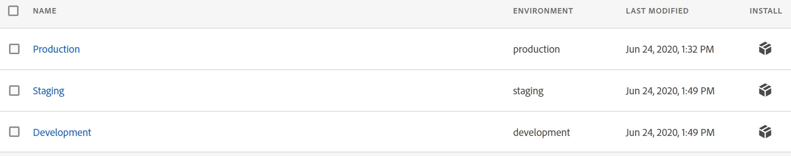 If you want to test launch script on dev environment then you can get it by clicking on the install button of the development environment, and to get the script for other environments you need to follow the same steps.