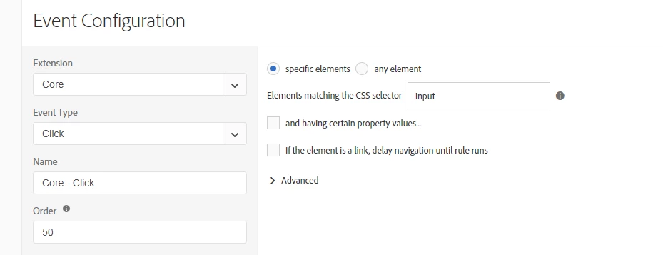 However, the rule captures the 1st element "input" not the "input" which was clicked.