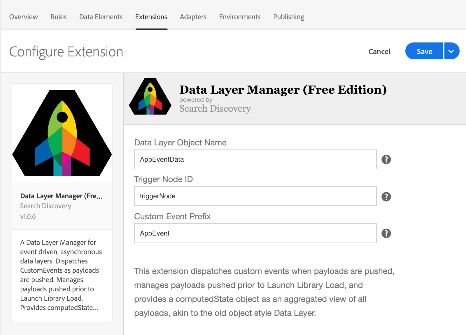 Step 1.  Install the Data Layer Manager extension in Launch.