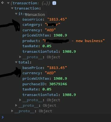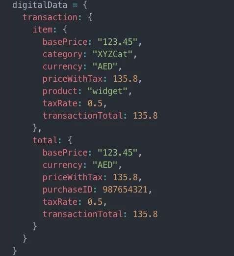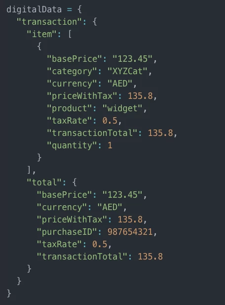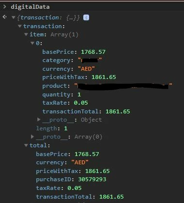 Here's my revised dataLayer object as an array. Should my root object be digitalData.transaction?