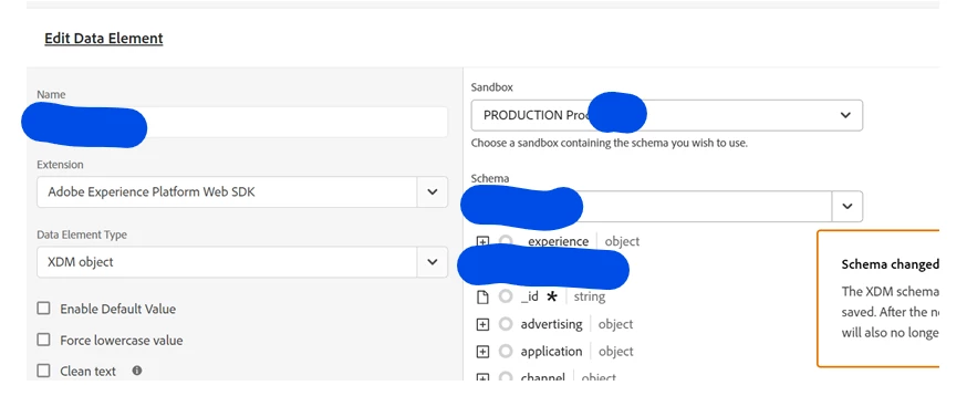 However, for assigning Schema in the XDM Object, there’s no such mechanism. And thus if we select the development Sandbox in the Launch development environment, there’s no way to automatically change it to use Production Sandbox when it’s published to the Launch Production environment (see below screen). We would like to know is it by design and what’s the best practice for this?