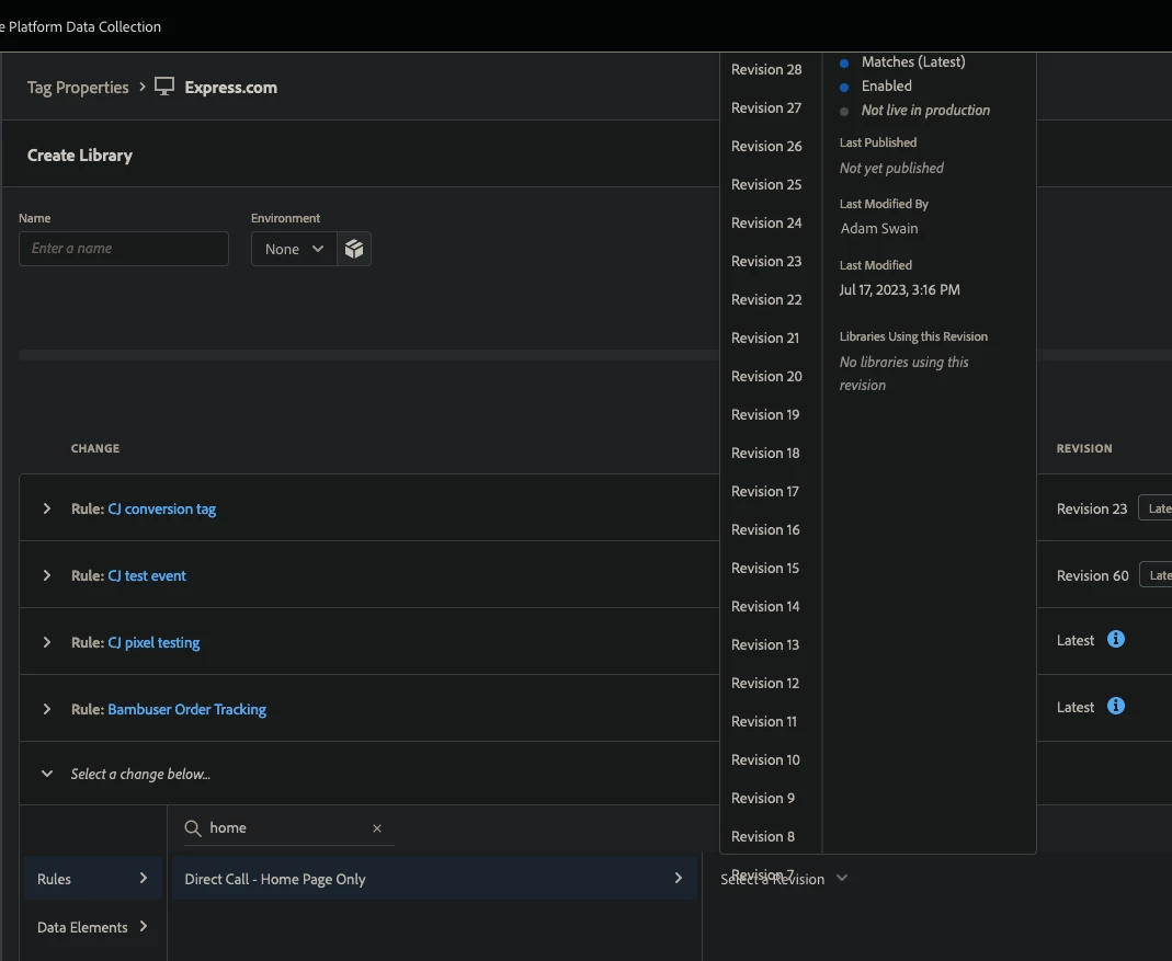 Then, whenever you change your rules or data elements, the blue "Save" button should now be labelled as "Save to Library". That ensures that all of your saved revisions are always selected as the latest revision in the library when you go to the Publishing Flow screen.