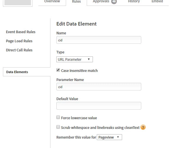 data element created for cid using URL parameter: