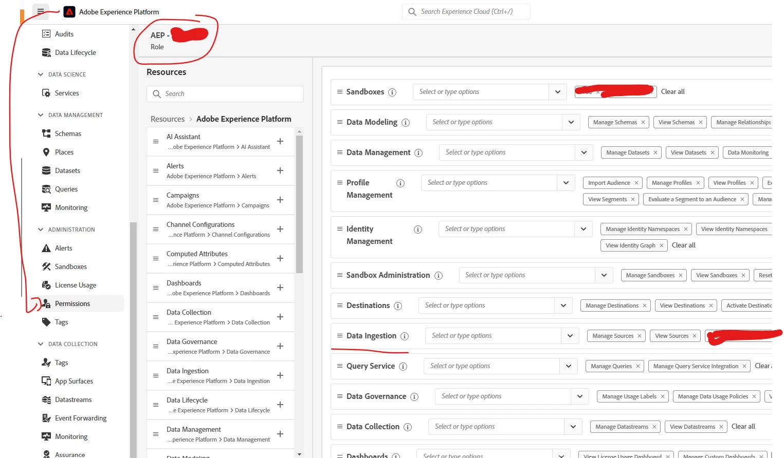 I am an admin for our Adobe Experience Platform product (in every product profile), however I am unable to import a CSV audience via workflows. The alert says that I need permissions to view-segments, manage-segments, view-sources, manage-sources, view-datasets, and manage-datasets. Based on other information in the Experience league those permissions are created and assigned within the AEP under and admin section called permissions. As you can see from my screen shot that option is not available. Am I doing something incorrectly or should I be looking in a different area?