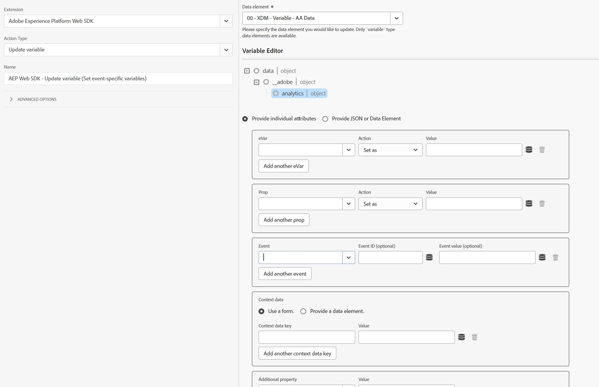 AEP Web SDK Extension Update Variable command for Data type Variable only shows up to 250 events in the UI