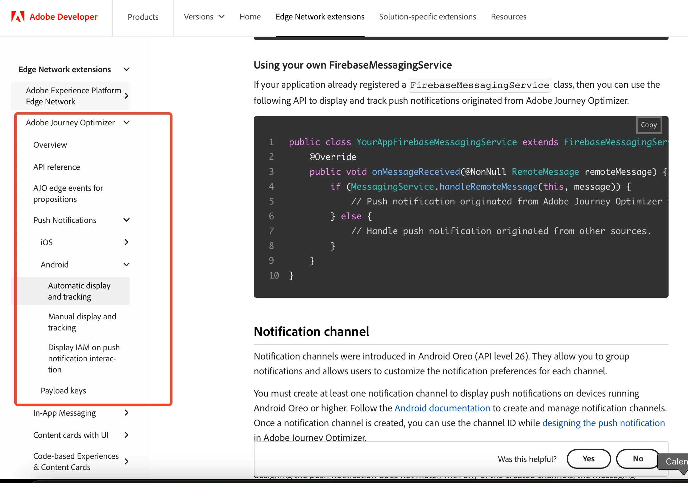 Hi, I’d like to confirm whether click tracking for push notifications in AJO requires adding a specific function in the mobile app code - similar to how it works in ACS. (Please refer to this ACS documentation: https://experienceleague.adobe.com/en/docs/campaign-standard/using/administrating/configuring-mobile/push-tracking)