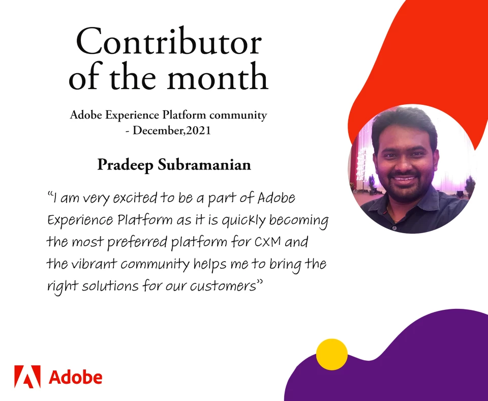 Pradeep had been an active member of AEP community with 30+ posts and 10+ solutions. Thanks Pradeep for his immense contribution to AEP community.