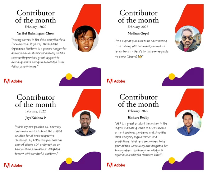 @yuhuisg : Being community advisor and Adobe Analytics Veteran, his immense knowledge in AEP is torchbearer to community.