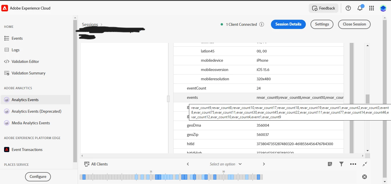Testing AEP mobile SDK analytics with a focus on which events are firing in the beacon.