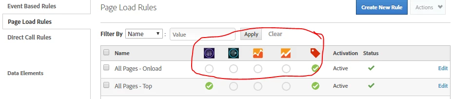 Current DTM includes icons over the rule lists that indicate Adobe variables, Google Analytics, Google Universal and Additional Tags. This would be a welcome addition to Launch, especially for when the rule lists get long.