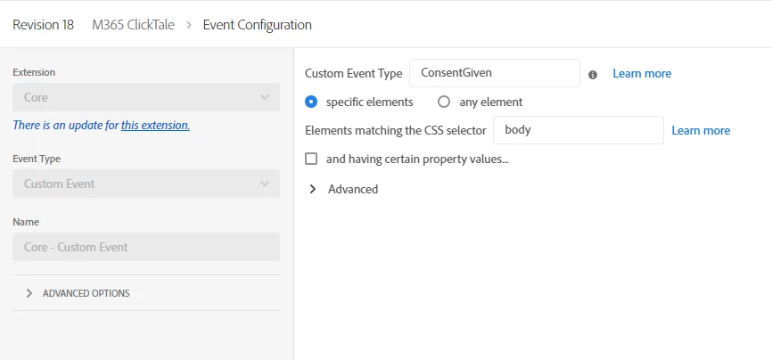 I'm trying to get a rule to load via firing a custom event on the rule. We have the following event set up for it: