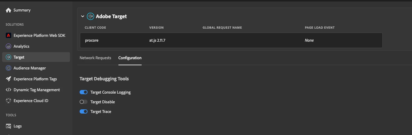 I have the Target Trace toggle turned on in the Chrome Extension Adobe Experience Platform Debugger. I refresh my page, but none of the response data is populating. I do see activity in the Network requests Screen, however I want to see what tests I'm in and which were evaluated. Please help if someone knows a work around.