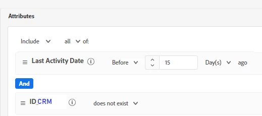 Profile Attributes should not have non-cookie IDs (e.g. CRM_ID) or any update in last N days (optional criteria, only needed if populating Profile attributes for non-Authenticated identities like consent)
