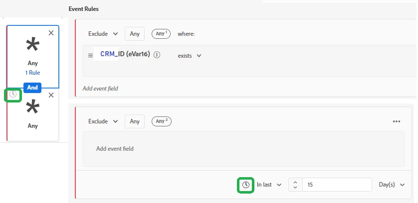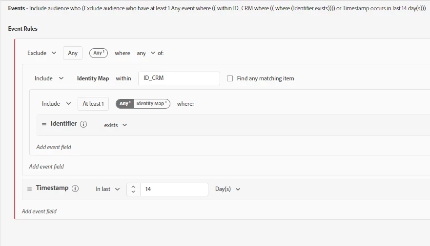 For any other Web Events feed if the known ID (e.g. CRM_ID) is expected in an Evar which is marked as an identity, then it must be specified in the Exclude criteria.