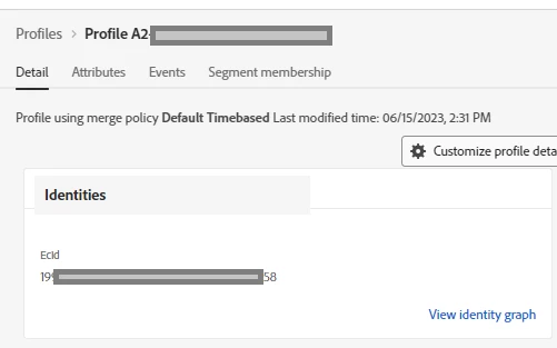 - No non-cookie Identity namespace like Email/CRM_ID etc, just the ones specified in the request like ECID (Experience Cloud ID), AAID etc. This Profile has only identities from a cookie namespace (ECID).