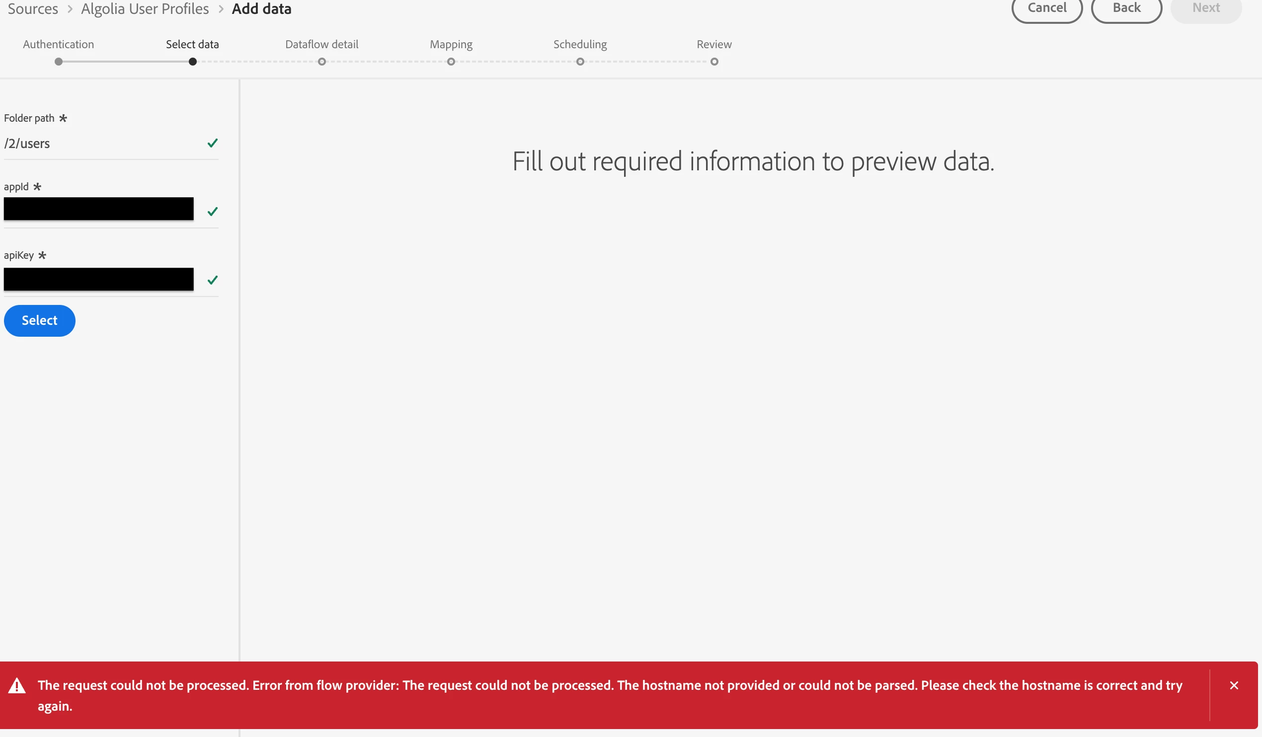 @sajidmomin Looks like in the host name you have provided protocol bas path, please do provide just host name and try it.