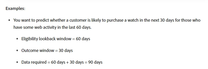 In customer AI historical data requirements, its mentioned that data required = Eligible lookback window + outcome window. Where the eligible lookback window is defined in the eligible population.