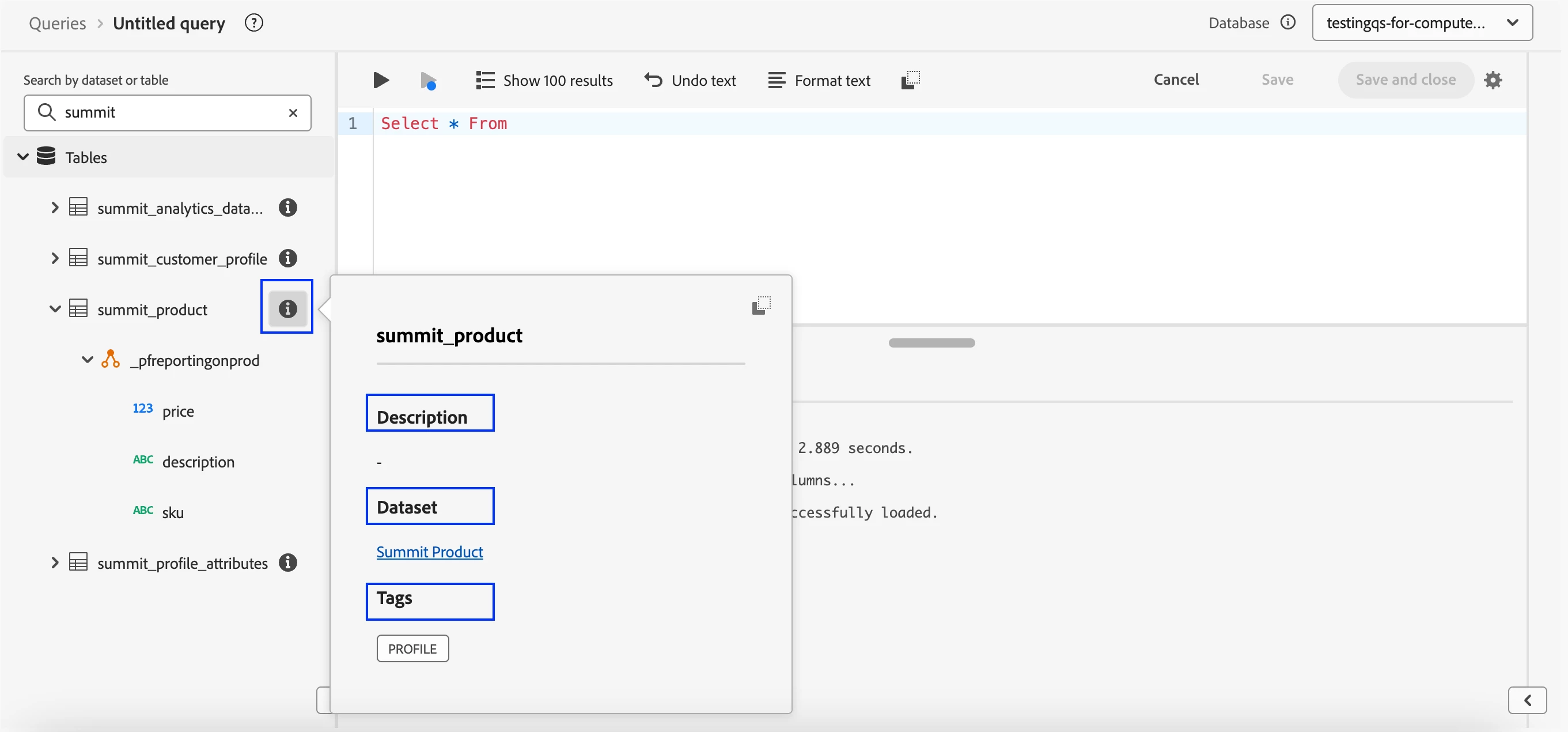 The Object Browser makes it faster and easier to find tables and understand your data in Data Distiller.By showing table structure alongside query authoring, it makes writing SQL queries easier and more efficient.