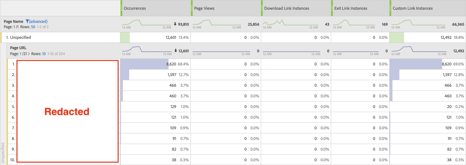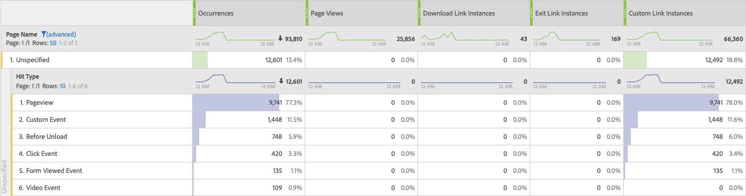 - 12% of hits are coming through as unspecified, with no pattern