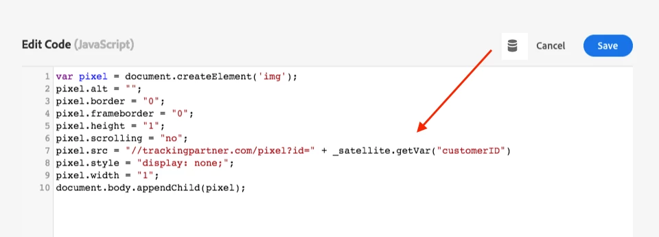 I often reference data elements in custom code through _satellite.getVar. I'll be in the middle of writing custom code and realize I need a value from a data element. Since I have a lot of data elements, I'll have to leave the rule entirely, find the DE I'm looking for, and copy the name. I would like to pipe data elements directly into custom code with a selector similar to the way variables are set. Selecting a data element would insert it into custom code through the %dataelement% syntax or satellite.getVar syntax