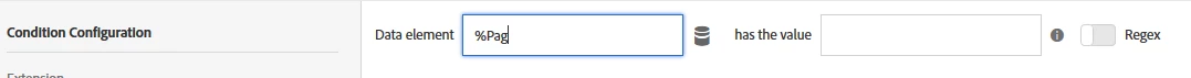 The rules editor in DTM features data elements search suggestions and autocomplete: