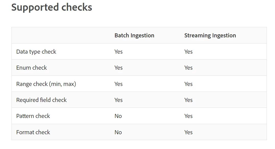 My question is there any way to validate this via UI or API as I did not come across this anywhere while selecting the XDM Schema or Field Groups, however on ingesting data it is showing as failed, so where is this check happening within the system, is there any way to find out this?