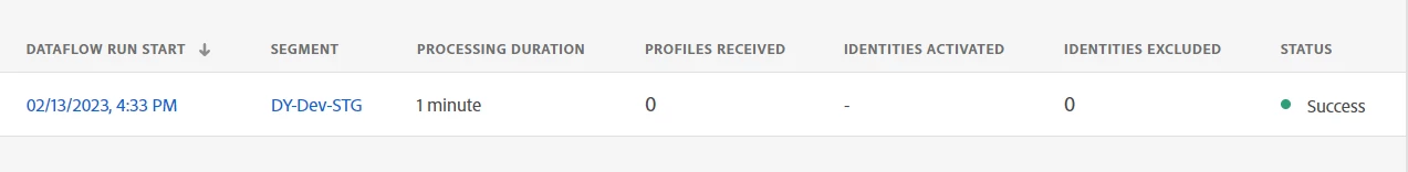 As per schedule dataflow runs and it get success, however I can see zero profiles received and not seen any files on S3 bucket folder.