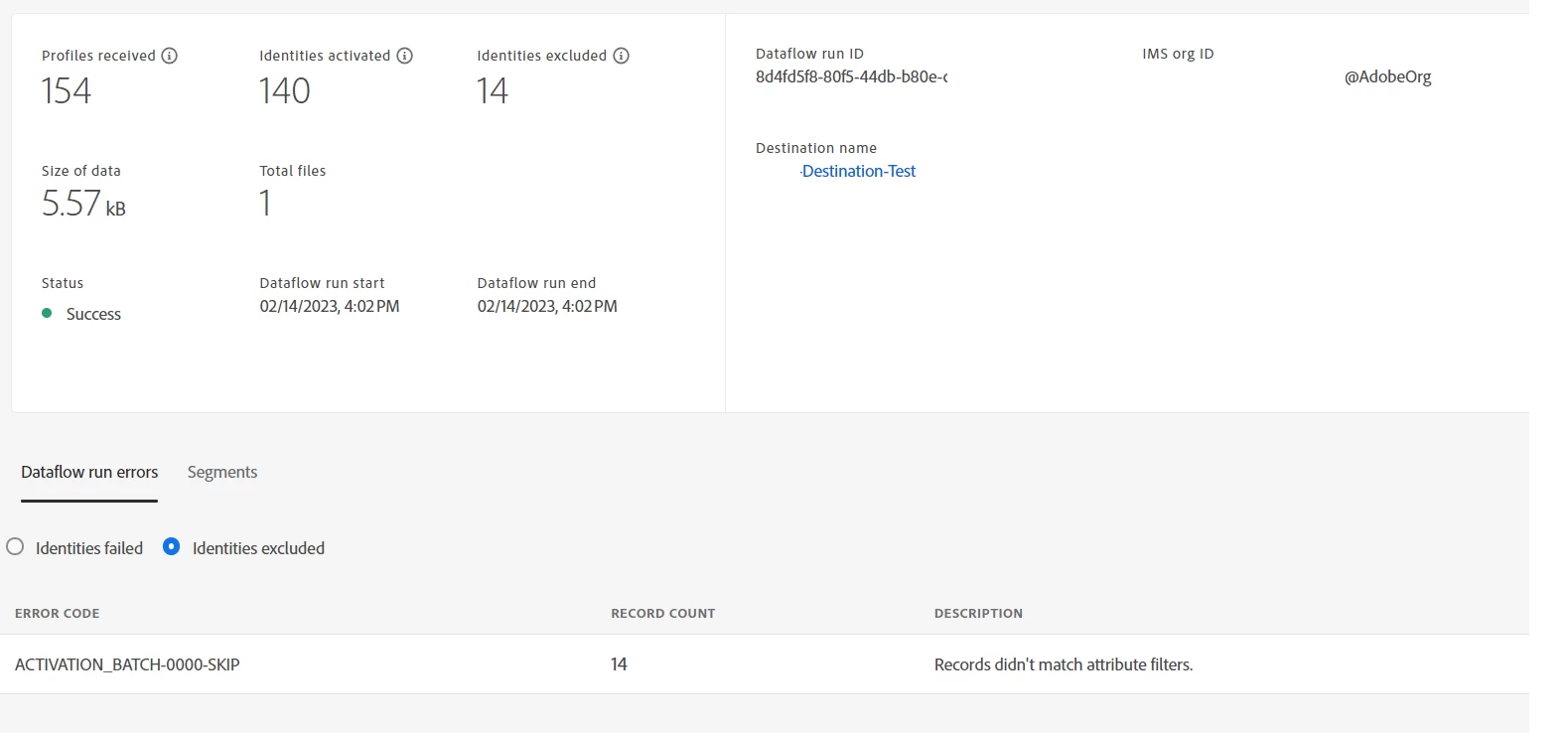 I setup one S3 destination dataflow and activated one segment using profile attributes.