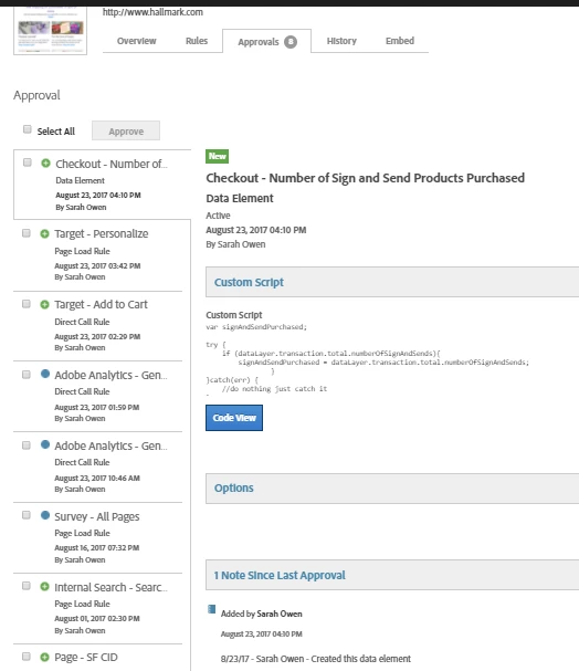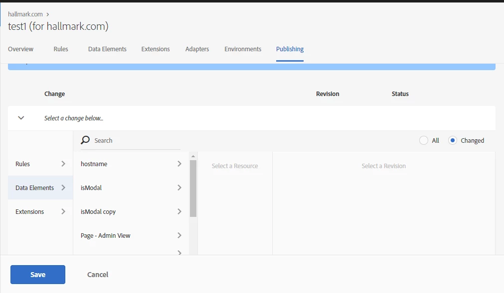 Design of the Add a Change section of the Publishing Tab