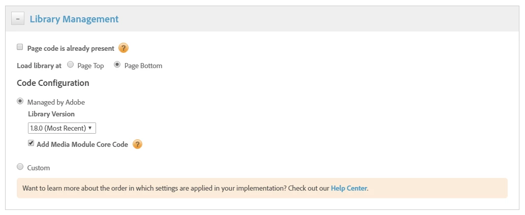 Currently, when you want to use the Media Module in Adobe DTM, the only way is to switch the AppMeasurement Core Code to "Custom" and paste the Media Module before the existing code. By doing so, you loose the option to one-click-upgrade via dropdown, and the ability to see if your property is using the Most Recent AppMeasurement code version or not.