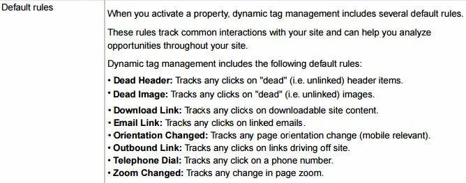 I noticed that when you create a new property in DTM that you get some out-of-the-box EBR's and they are inactive and tracking is disabled..