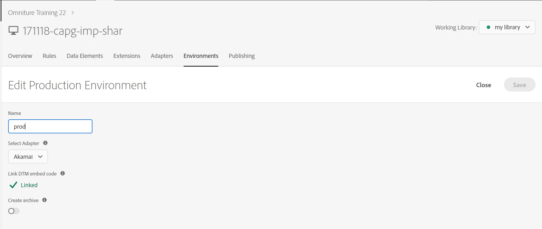 Getting Prod Environment(Embed code copied from DTM prod Embed code) Inactive while creating New Library.