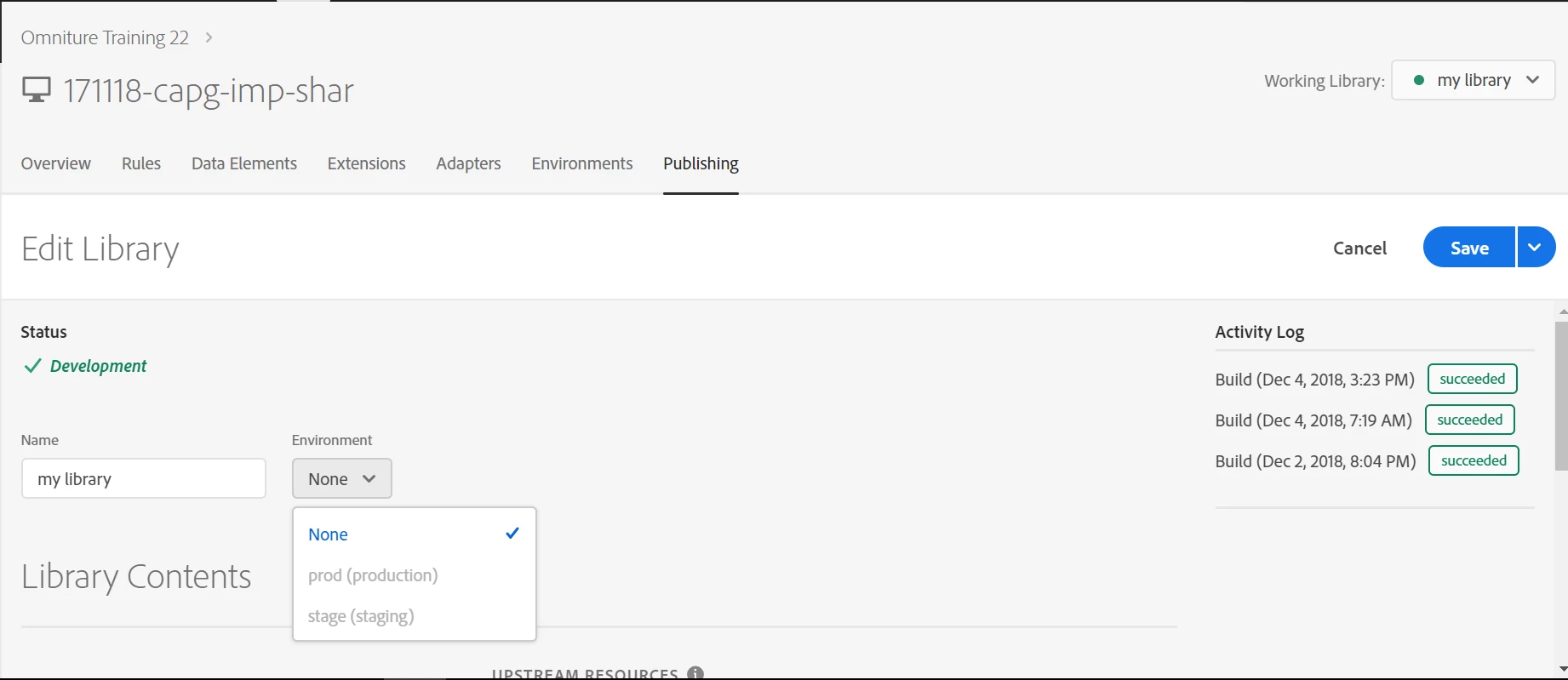 I have already created new production environment in launch using DTM embed code but while publishing it I am creating New Library using prod environment(which i have created using DTM prod embed code) I am getting this environment as inactive in new library dropdown list.