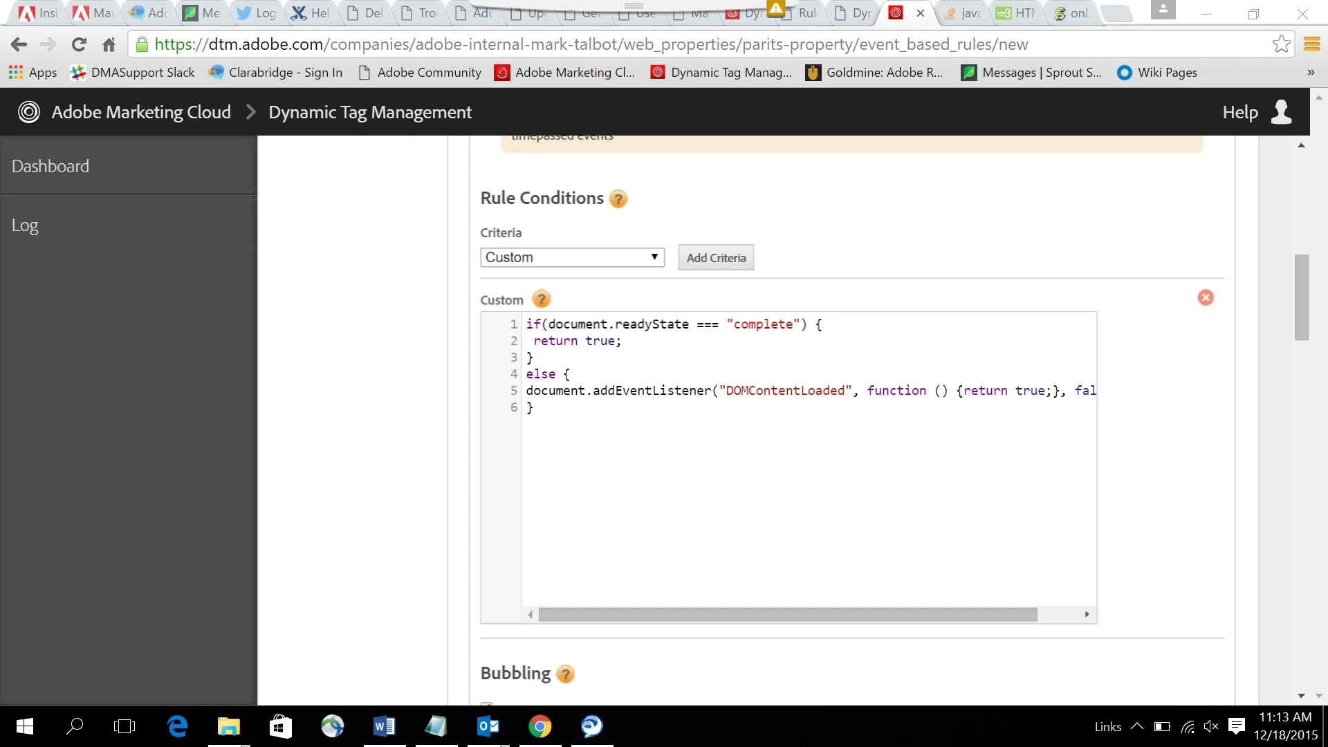 The pushState/hashchange event type available under rule conditions is incredibly useful for ajax based web sites and I am successfully using it when URLs change and new content is loaded without an actual page load happening. However, I would like to take this a step further but am not sure how. I am wondering if it is possible to configure a rule so that rather than triggering analytics code immediately after a pushState or hashchange, instead the rule waits for the content or DOM to load so I can make use of variables, elements, etc. on the page. My currently rule works fine for capturing the basic new URL that was requested but I can't make use of any data on the page itself because of how early the analytics code fires.