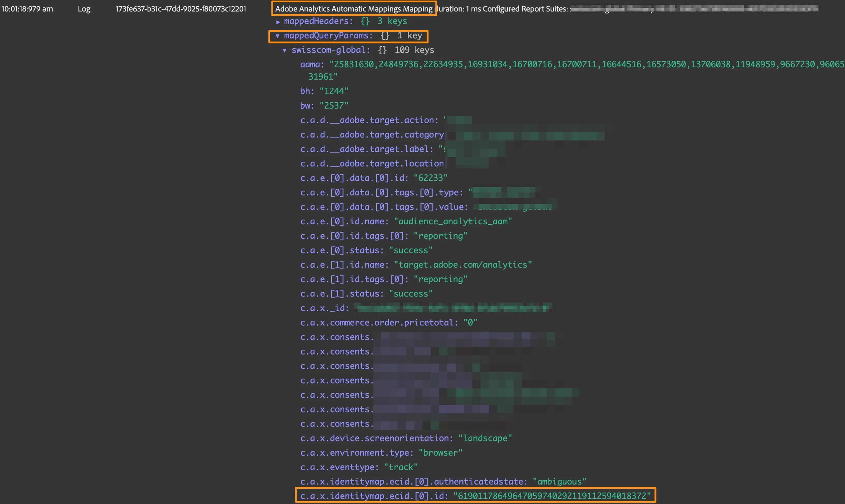1. Although, I am able to see these ECID's in Adobe Analytics but I can't see them neither in any debugger like omnibug or in interact call, as I am expecting to see this ECID getting stored in that eVar where I am passing within that data prep method
