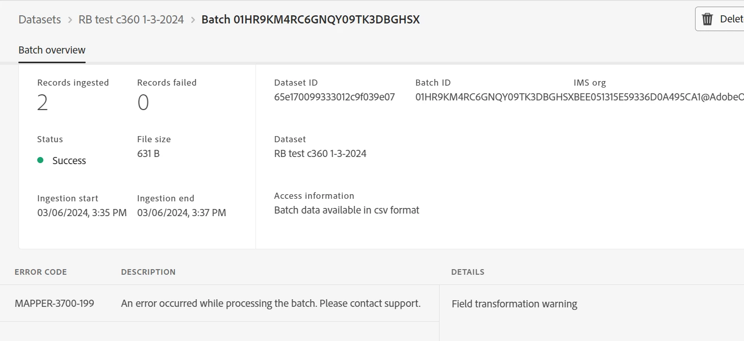 however, the ingestion was successful in AEP, why so? can anyone provide the solution to this issue