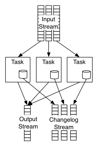 In Samza, each task is associated with its own instance of a local database, which only stores data corresponding to the partitions processed by that task. When scaling a workflow, Samza provides more computational resources by transparently migrating the tasks from one machine to another, giving each task its own state. This allows tasks to be relocated without impacting the overall performance.