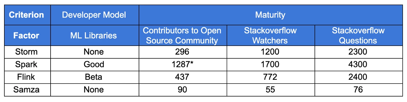 - Flink framework has good community support overall compared to the other frameworks we evaluated, which bodes well for its continued development and maintenance.