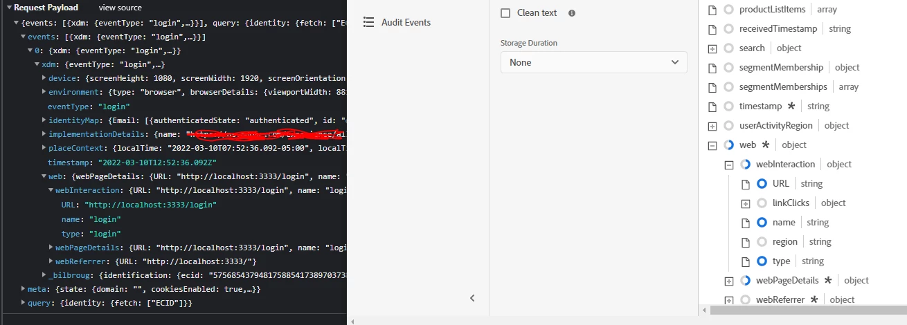 I have configured an XDM object in launch to fire on a button click (login). I can see it working in the network request. However when I query my web event dataset in AEP, these events are not present. My other XDM object for pageviews works just fine.